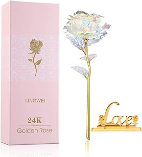 lingwei 24K 人工 カラフル ゴールド ローズ フォーエバー フラワーズ ラブ-シェイプ スタンド付き ベスト ギフト バレンタインデー 感謝祭 アニバーサリー 母日 誕生日用 ガールズ 妻 レディーズ用 カラフル