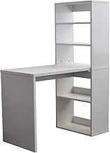 [4NM] パソコンデスク デスク 本棚付き 収納 整理 幅120×奥行60×高さ120cm パソコンデスク (メラミン加工) 机 PCデスク 在宅勤務テレワーク (オークと白)