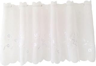 FLAMEER 刺繍スタイル ハーフカーテン カフェ 台所 バスルーム デコレーション キッチンカーテン - ホワイト, 45x90cm