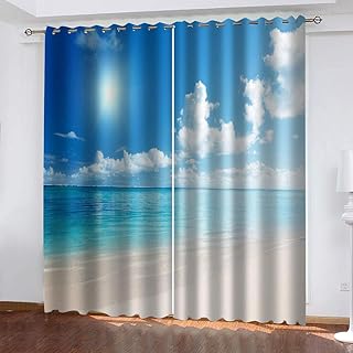 LHUTY アイレットカーテン 青い空と海 2 x 幅100 x 丈135cm 熱絶縁はノイズ2枚のパネルカーテンセットな還元 - ベッドルームリビングルーム子供部屋3D 印刷用遮光カーテン