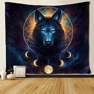 SARA NELL 壁掛けタペストリー オオカミ 月 銀河 星空 ヒッピー アート 壁掛け スロー テーブルクロス 50×60インチ 寝室 リビングルーム 寮の部屋用 50x60 inches OIJASOFOISNFSA-5645477