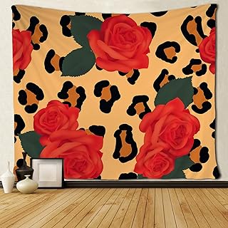 SARA NELL ウォールタペストリー チーターレオパードスキン レッドローズタペストリー ヒッピーアート 壁掛けスローテーブルクロス 50 x 60インチ 寝室 リビングルーム 寮の部屋に