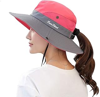 Sowift レディース ポニーテール サンハット UV保護 アウトドア つば広 折りたたみ式 ビーチキャップ メッシュ 釣り帽子