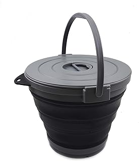 SAMMART 10L(2.64ガロン) ロック蓋付き 折りたたみ式 釣り用バケツ - 折りたたみ式 丸タブ - ポータブル プラスチック 水おけ - 省スペース アウトドア 水入れ容器 1個(1パック) グレー/ブラック