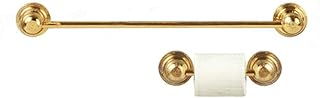 Dolls House Gold Brass Towel Rail Toilet Tissue Fittings Set Bathroom Accessory