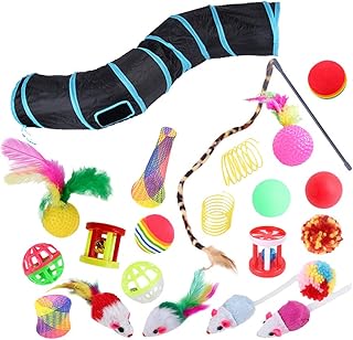 猫 おもちゃ 猫トンネル キャットトンネル おもちゃセット 23点 トンネル ボール 羽のおもちゃ ネズミ 猫じゃらし 折りたたみ式 収納便利 猫遊び ストレス発散 運動不足 対策 (S型)
