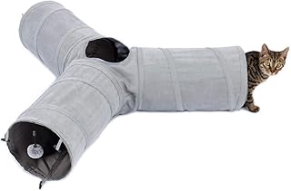 PAWZ Road 猫トンネル キャットトンネル 猫のおもちゃ 折りたたみ式 頑丈 ぽんぽん付き トンネル とんねる 三通 グレー …