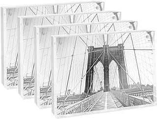 Isaac Jacobs 5インチ x 7インチ (4個パック) 極厚 [厚さ28mm] クリアアクリル 磁気ブロック 写真フレーム 両面 フレームなし 自立 フローティング写真 デスクトップ&卓上ディスプレイ用 (5x7)