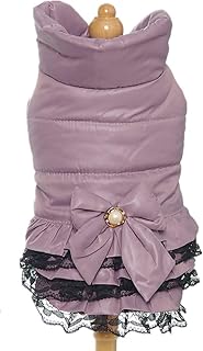ICOUCHI ペット服 かわいい ドレス 裏起毛 犬服 ワンピース 秋冬 スカート ダウン風 蝶結び レース ドッグウェア 厚い 犬猫用 洋服 小型犬 中型犬 袖なし お散歩お出かけ服 コスチューム 着物 ペットウェア クリスマス 防寒 (M, パープル)