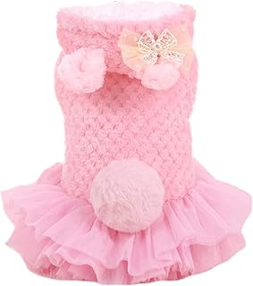 ICOUCHI ペット服 かわいい ドレス 裏起毛 犬服 秋冬 ワンピース ドッグウェア チュール スカート 蝶結び ふわふわ フード付き 犬猫用 小型犬 中型犬 お散歩お出かけ服 クリスマス 着物 ペットウェア 犬洋服 防寒 ファッション オシャレ 猫服 女の子 お姫様 コスチューム 記念撮影 暖かい お正月 … (S, ピンク)
