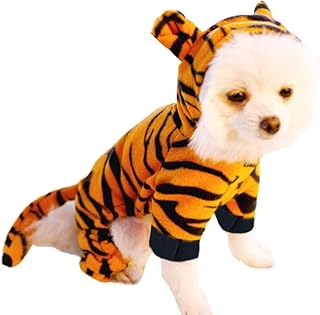 ICOUCHI 犬服 ロンパース つなぎ ドッグウェア 可愛い 秋冬 パーカー トラ型のフード付き ふわふわ 暖かい 小型犬 中型犬 犬猫用 コスチューム おもしろい お散歩お出かけ 着物 コスプレ ハロウィーン クリスマス 犬洋服 仮装 (M, トラ)