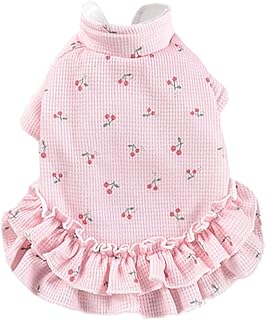 ICOUCHI ペット服 かわいい ドレス 裏起毛 犬服 秋冬 ワンピース ドッグウェア チェリー柄 小型犬 中型犬 お散歩お出かけ服 クリスマス 着物 ペットウェア 犬洋服 防寒 ファッション 猫服 女の子 お姫様 コスチューム 暖かい お正月 (S, ピンク)