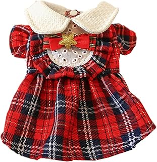 ICOUCHI ペット服 かわいい ドレス 犬服 ワンピース 秋冬 ドッグウェア チェック柄 蝶結び 女の子 犬猫用 小型犬 中型犬 パフ袖 お姫様 お散歩お出かけ服 クリスマス 着物 ペットウェア 犬洋服 防寒 (S, レッド)