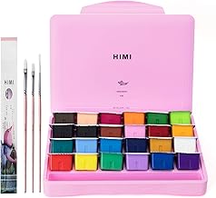 HIMI ガッシュ 水彩絵の具 セット 24色×30ml パレット+ペイントブラシ3本付き グワッシュペイント ゼリーカップデザイン 持ち運びケース入り (ピンク)