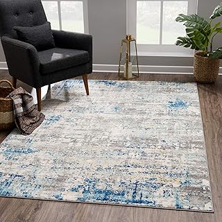 モダン 抽象 エリアラグ グレー/ブルー 8x10 リビングルーム 寝室 キッチン (7フィート10インチ x 10フィート)