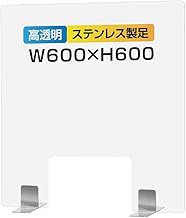 アクリル板 パーテーション アクリルパーテーション デスク用パーテーション アクリルパネル 飛沫防止対策アクリル板 ステンレス製脚付き 衝立 仕切り板 居酒屋 飲食店 食事 学校 病院 角丸加工 板厚3mm 日本製 apc-s6060-m30 (W600×H600mm 窓あり 1枚)