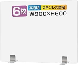 頂点看板 パーテーション アクリル板 アクリルパーテーション デスク用パーテーション アクリルパネル 飛沫防止対策アクリル板 ステンレス製脚付き 衝立 仕切り板 居酒屋 飲食店 食事 学校 病院 角丸加工 板厚3mm 日本製 apc-s9060-6set (W900×H600mm 6枚セット)