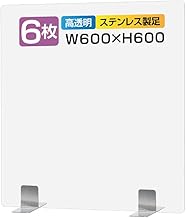 パーテーション アクリル板 アクリルパーテーション デスク用パーテーション アクリルパネル 飛沫防止対策アクリル板 ステンレス製脚付き 衝立 仕切り板 居酒屋 飲食店 食事 学校 病院 角丸加工 板厚3mm 日本製 apc-s6060-6set (W600mm×H600mm 6枚)