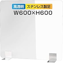 アクリル板 パーテーション アクリルパーテーション デスク用パーテーション アクリルパネル 飛沫防止対策アクリル板 ステンレス製脚付き 衝立 仕切り板 居酒屋 飲食店 食事 学校 病院 角丸加工 板厚3mm 日本製 apc-s6060 (W600×H600mm 1枚)