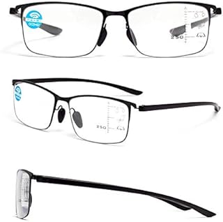 JO(ジ―オ―)遠近両用メガネ メンズ 軽量 ブルーライトカット 老眼鏡 半フレーム シニアグラス UVカット TR90 累進 おしゃれ ブラック専用ケース付きOTC JO3121004 (+2.5)